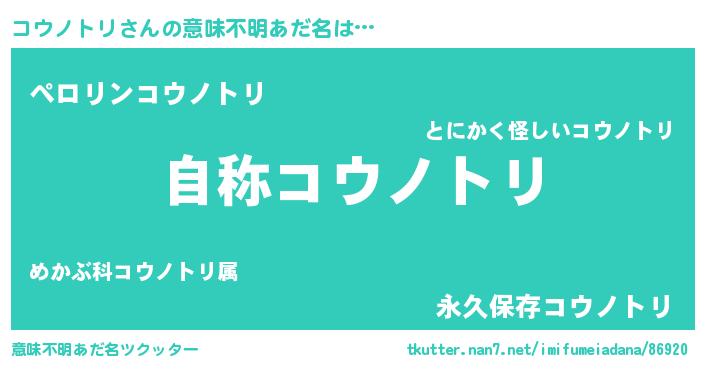 | 男性向けラノベタイトル風あだ名 | 『Re:コウノトリから始める異世界生活』 |