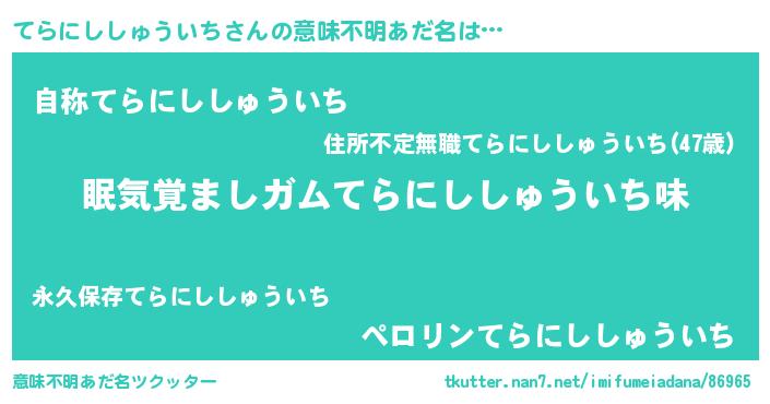 | ヘコむあだ名 | 『てらにー』『てらにししゅういち(笑)』 |
