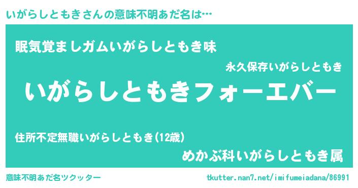 | 女子向けラノベタイトル風あだ名 | 『いがらしともきの雑貨屋さん』 |