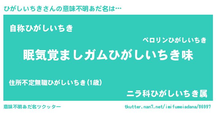 | 女子向けラノベタイトル風あだ名 | 『死神ひがしいちきの再婚』 |