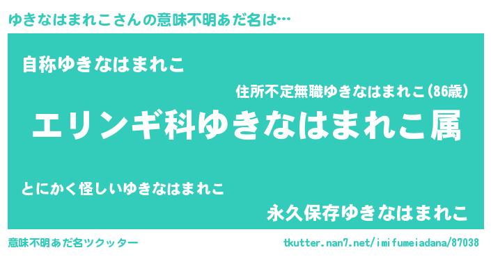 | 男性向けラノベタイトル風あだ名 | 『ユキナハマレコスレイヤー』 |