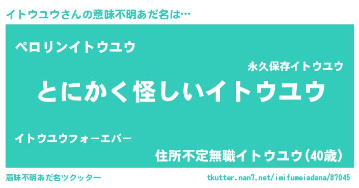 | 男性向けラノベタイトル風あだ名 | 『イトウユウの嫁は女の子じゃないと思った?』 |