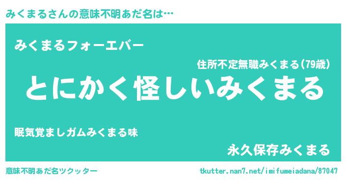 | ヒーロー風カッコイイあだ名 | 『天弓騎士ミク』『ウルトラみくまるマン』 |