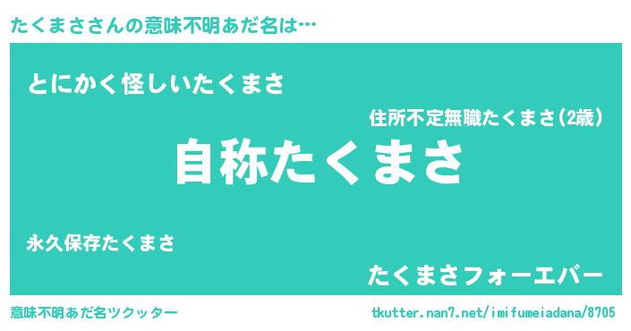 | 男性向けラノベタイトル風あだ名 | 『魔法科高校のたくまさ』 |