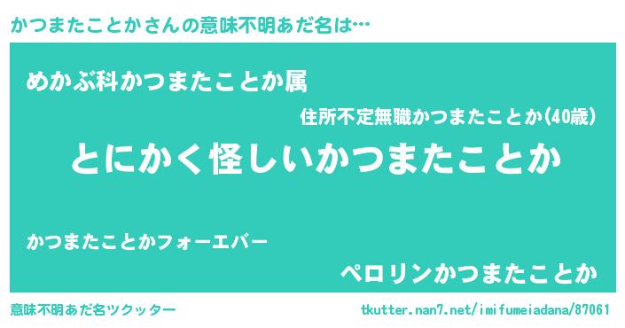 | 女子向けラノベタイトル風あだ名 | 『かつまたことか様がみてる』 |