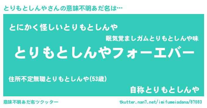 | 欧米人風あだ名 | 『とりもとしんや・ステッグマイヤー』 |