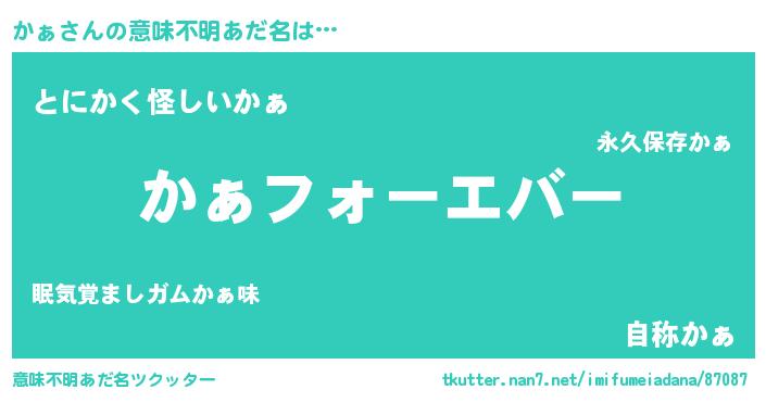 | 女子向けラノベタイトル風あだ名 | 『かぁの雑貨屋さん』『かぁ様がみてる』 |
