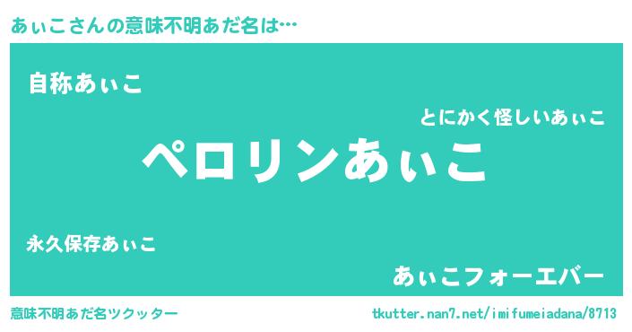 | ヒーロー風カッコイイあだ名 | 『スーパーアィコ』『超時空戦士アィコ』 |