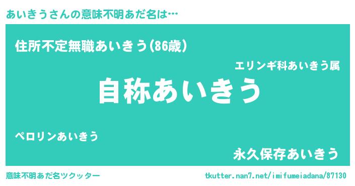 | ヒーロー風カッコイイあだ名 | 『超時空戦士アイキウ』『仮面アイダー』 |