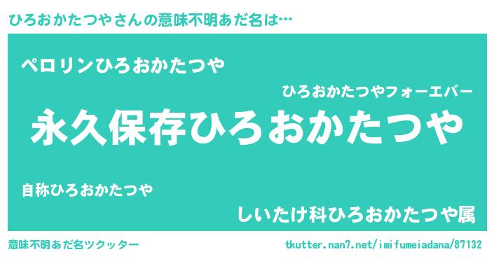 | 男性向けラノベタイトル風あだ名 | 『ひろおかたつやという概念が存在しない退屈な世界 』 |
