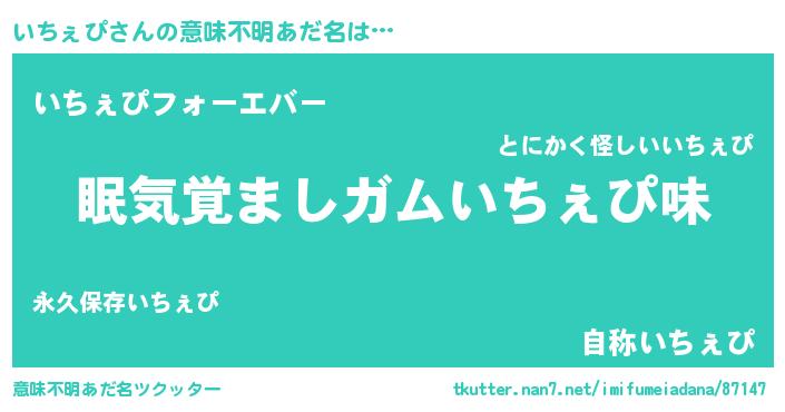 | 女子向けラノベタイトル風あだ名 | 『死神いちぇぴの再婚』『闇のいちぇぴ』 |
