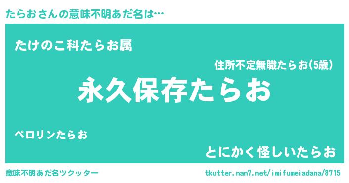 | ヘコむあだ名 | 『たらお(遠い目)』『たら太郎』 |