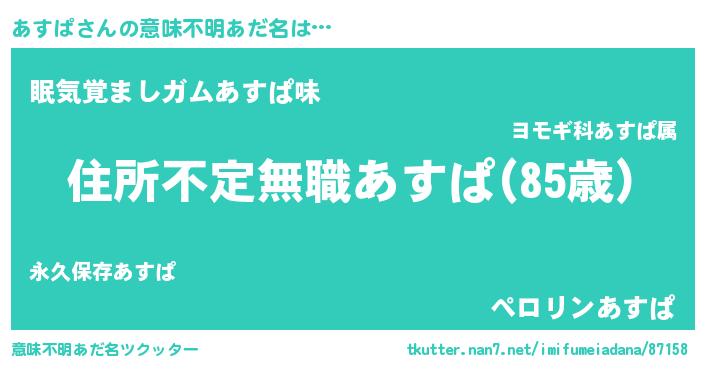 | ヘコむあだ名 | 『あすっふぃ~』『あすぱ(小並感)』 |