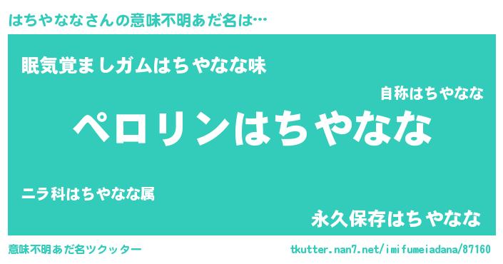 | 男性向けラノベタイトル風あだ名 | 『はちやななの憂鬱』 |