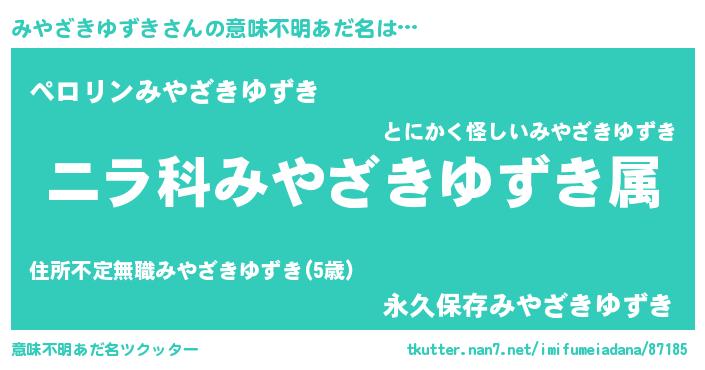 | 男性向けラノベタイトル風あだ名 | 『みやざきゆずきに滅ぼされるだけの簡単なお仕事です』 |