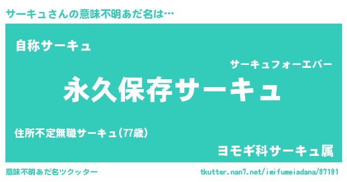 | 男性向けラノベタイトル風あだ名 | 『サーキュという概念が存在しない退屈な世界 』 |