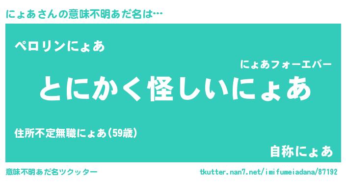 | 女子向けラノベタイトル風あだ名 | 『にょあは平凡を望む』『闇のにょあ』 |