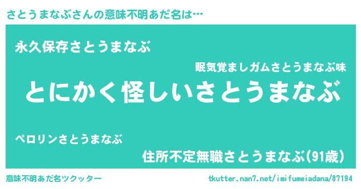 | ポケモン風あだ名 | 『ヒサトウマナブ』『ゼニサト』 |