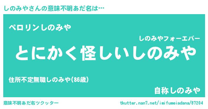 | 胡散臭い通販商品みたいなあだ名 | 『信頼と実績のサプリメント…その名も「しのみや」』 |