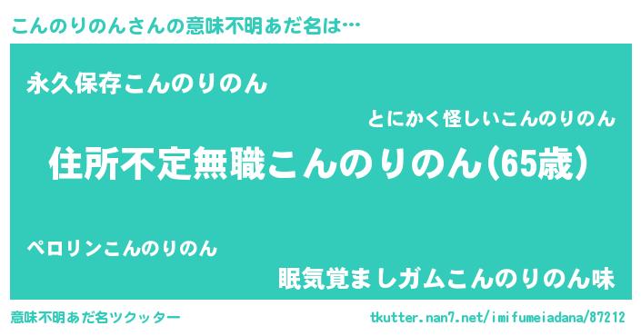 | 男性向けラノベタイトル風あだ名 | 『この素晴らしい世界にこんのりのんを!』 |