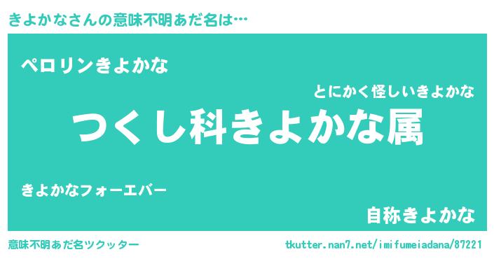 | 男性向けラノベタイトル風あだ名 | 『きよかな~年齢イコール彼女いない歴の魔法使い~』 |