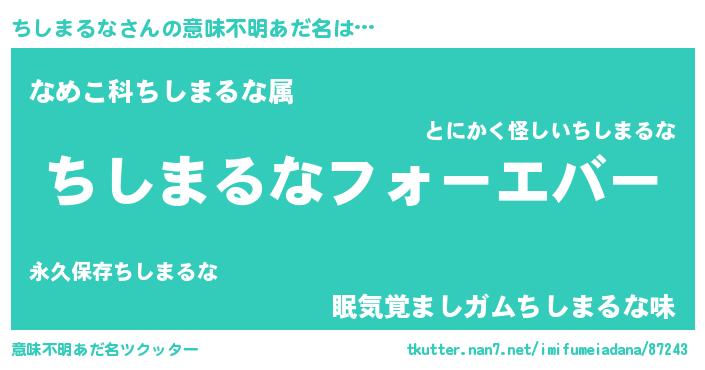 | 欧米人風あだ名 | 『ちしまるな・ステッグマイヤー』 |