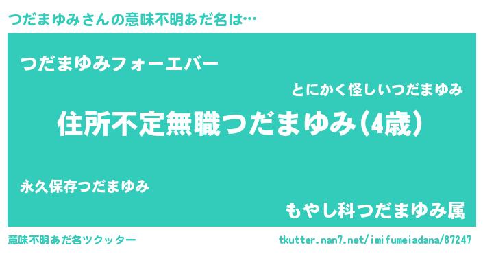 | 肩書あだ名 | 『つだまゆみ教官』『つだまゆみ総理大臣』 |