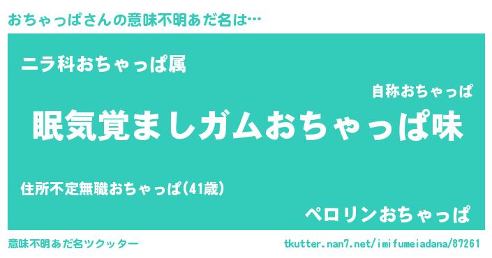 | 女子向けラノベタイトル風あだ名 | 『おちゃっぱ恋絵巻』 |