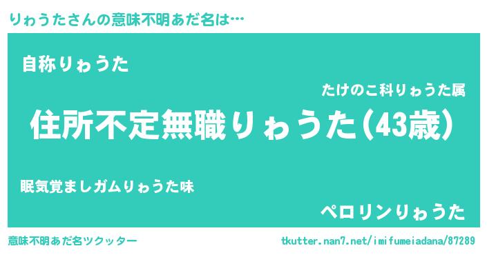 | 恥ずかしいあだ名 | 『リヮウタデラックス』『りゎっちょ』 |