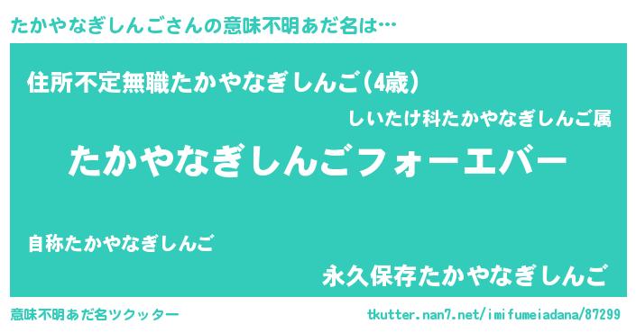 | 欧米人風あだ名 | 『たかやなぎしんごクリステル』 |