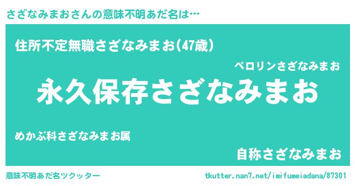 | ヘコむあだ名 | 『さざなみまお(遠い目)』『さざにゅー』 |