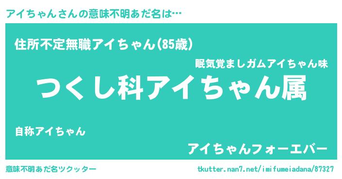 | 男性向けラノベタイトル風あだ名 | 『アイちゃん~年齢イコール彼女いない歴の魔法使い~』 |