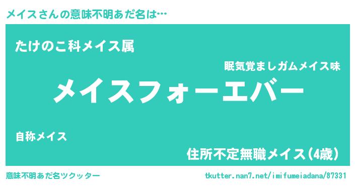| ヘコむあだ名 | 『つくし』『メイもー』『メイぷりん』 |
