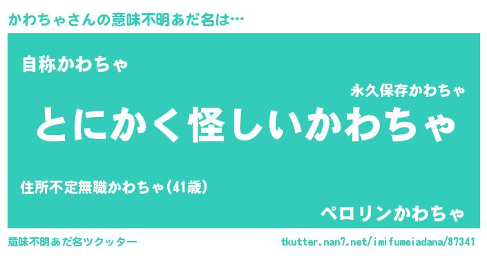 | 男性向けラノベタイトル風あだ名 | 『かわちゃの嫁は女の子じゃないと思った?』 |