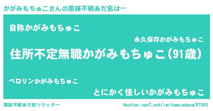 | 欧米人風あだ名 | 『ダレノガレかがみもちゅこ』 |