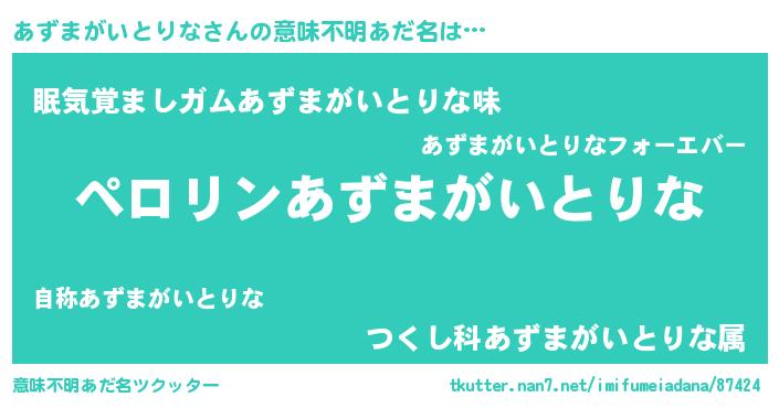 | 欧米人風あだ名 | 『マイケルあずまがいとりな』 |