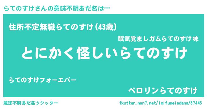 | 欧米人風あだ名 | 『アンジェラ・らてのすけ』 |