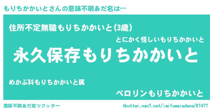 | ヘコむあだ名 | 『もりちかかいと(小並感)』『もりにゅー』 |
