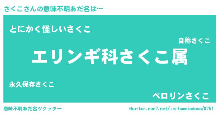 | 胡散臭い通販商品みたいなあだ名 | 『信頼と実績のサプリメント…その名も「さくこ」』 |