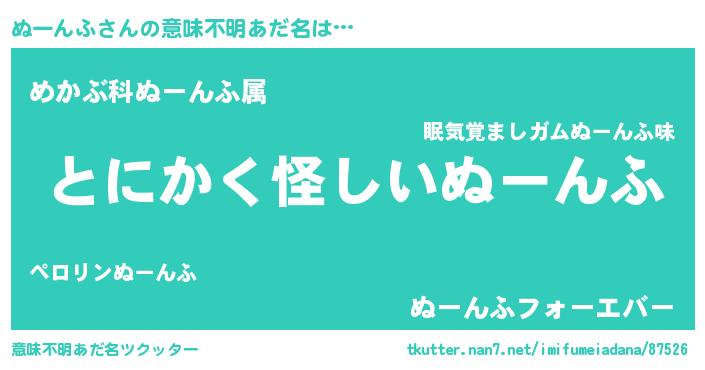 | 萌えアニメ | 主人公(ぬーんふ)のあだ名『ぬーんふにゃん』 |