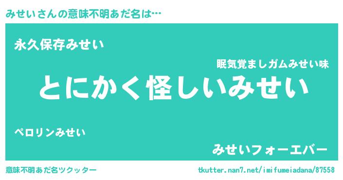 | 胡散臭い通販商品みたいなあだ名 | 『全米が絶賛したサプリメント…その名も「みせい」』 |