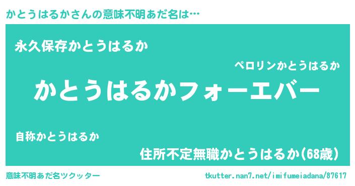| ファンタジー風あだ名 | 『エターナルカトウハルカー』 |
