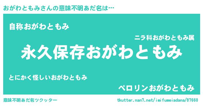 | 男性向けラノベタイトル風あだ名 | 『おがわともみという概念が存在しない退屈な世界 』 |