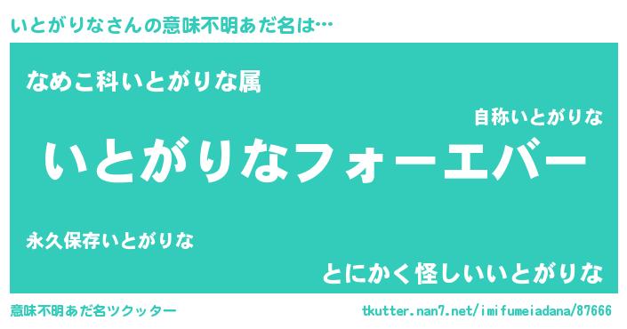 | 男性向けラノベタイトル風あだ名 | 『うちの娘の為ならば、俺はもしかしたらいとがりなも倒せるかもしれない。』 |
