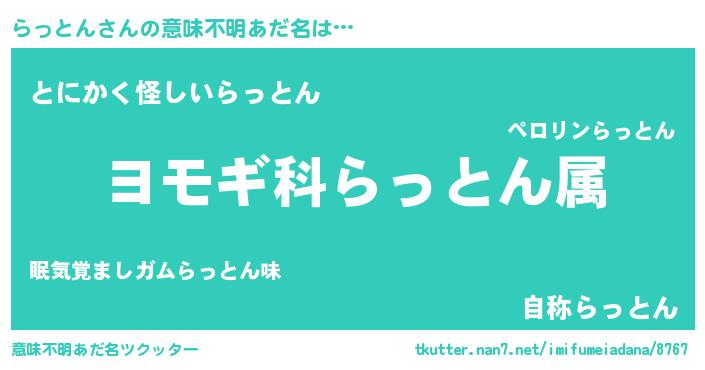 | 男性向けラノベタイトル風あだ名 | 『らっとんに滅ぼされるだけの簡単なお仕事です』 |