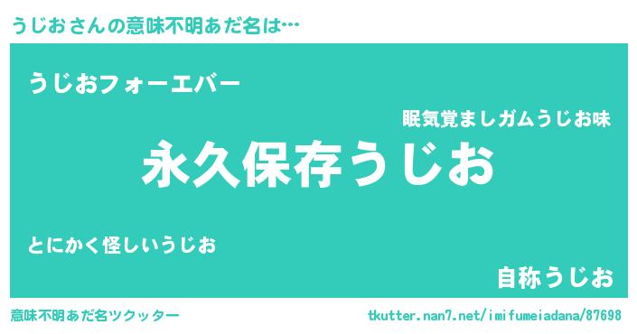 | 胡散臭い通販商品みたいなあだ名 | 『絶対に幸福をもたらす水素水…その名も「うじお」』 |