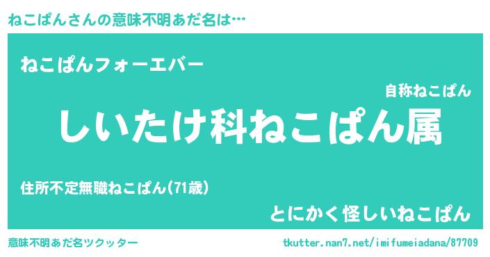 | 料理風あだ名 | 『ねこぱんごはん』 |