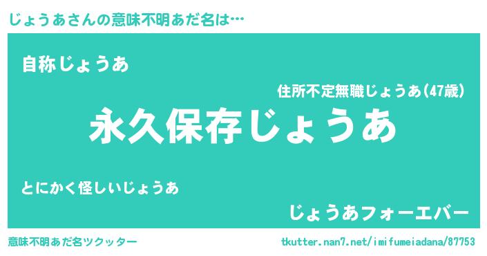 | 男性向けラノベタイトル風あだ名 | 『じょうあという概念が存在しない退屈な世界 』 |