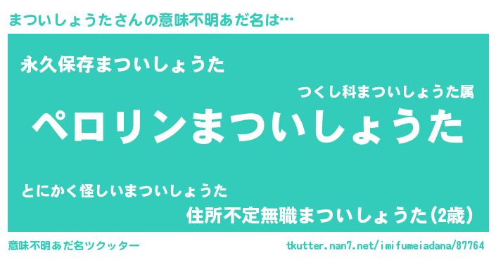 | ヒーロー風カッコイイあだ名 | 『スーパーマツイショウタ』 |