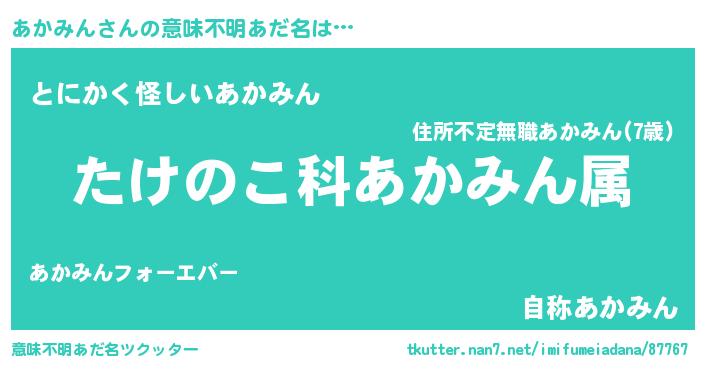 | 男性向けラノベタイトル風あだ名 | 『転生したらあかみんだった件』 |